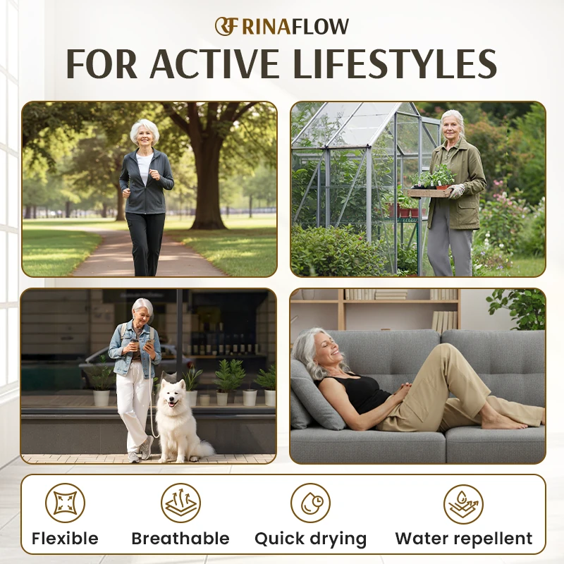Stay ready for anything with RinaFlow, crafted with cool-touch, ultra-stretch fabric that delivers exceptional flexibility for smooth, natural mobility.