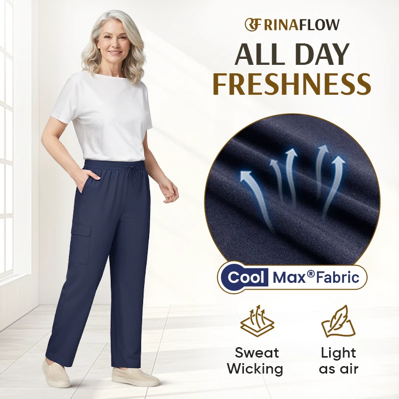 RinaFlow is made from advanced COOLMAX® fibers that offer a cool touch, wick moisture and release heat. These pants ensure you stay dry as if they're breathing, maintaining a fresh feel all day.